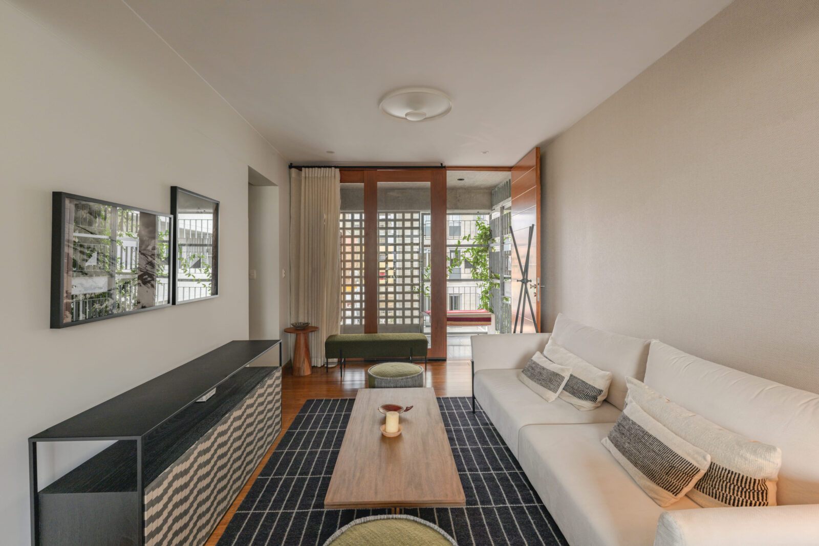 Con sólo 20 departamentos y un local comercial pequeño, se propone la convivencia y una vida moderna a escala de barrio. Las distintas tipologías y el uso mixto ayudan a generar un barrio más dinámico y seguro. El proyecto plantea una integración a toda escala, desde los zaguanes y terrazas de los departamentos, que se abalconan sobre el patio central barranquino y sobre Jirón Cabada, hasta las fachadas con vegetación que integran el proyecto con el Parque Torres Paz, a media cuadra de distancia.